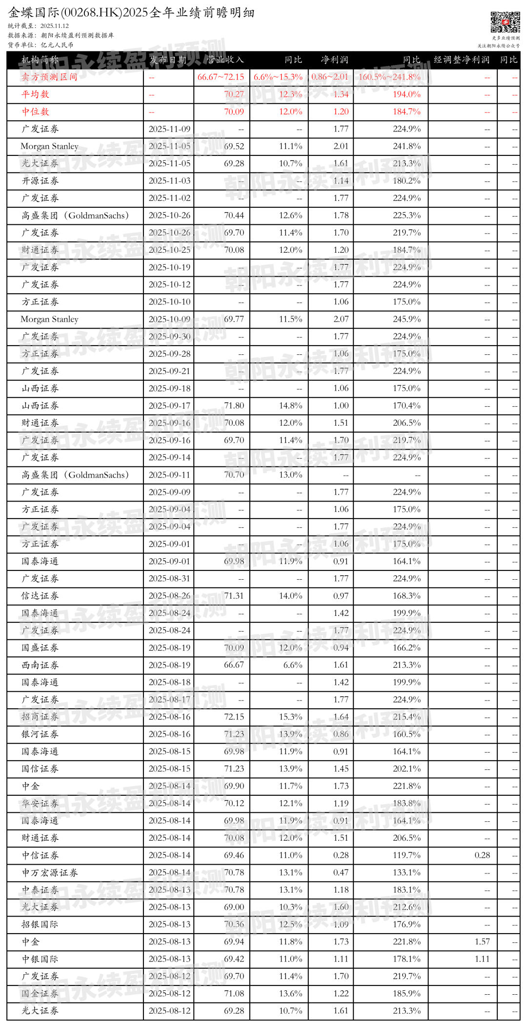 截至2025年11月12日,根据朝阳永续季度业绩前瞻数据: