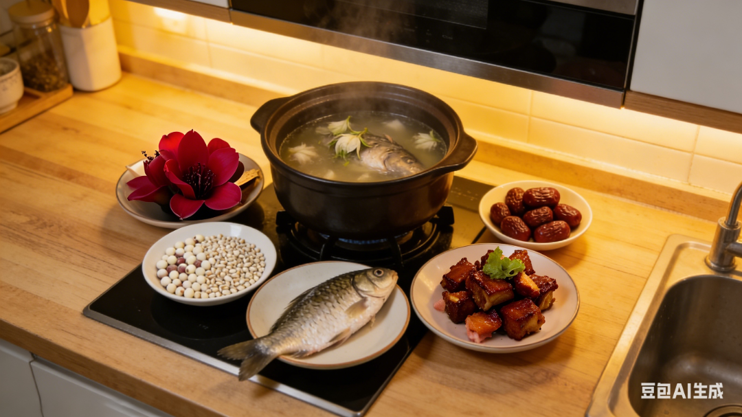 【材料】木棉花干30克,芡实、薏米各35克,蜜枣4个,鲫鱼1条,猪瘦肉50克,生姜4片。