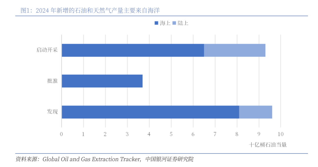 我国海域油气资源丰富,四大海域均有油气发现,勘探开发前景广阔。作为海洋大国,我国海洋油气资源丰富。仅南海石油资源量约248亿吨,天然气约42万亿立方米,约一半蕴藏在深海海域。2024年我国海洋原油、天然气产量分别较上年增长4.7%、8.7%,增长趋势显著。当前,在国家大力推动深海经济、提升海洋资源开发能力的背景下,叠加财政投入与产业支持持续强化,未来海上油气项目前景开阔,行业有望迎来长期成长机遇。