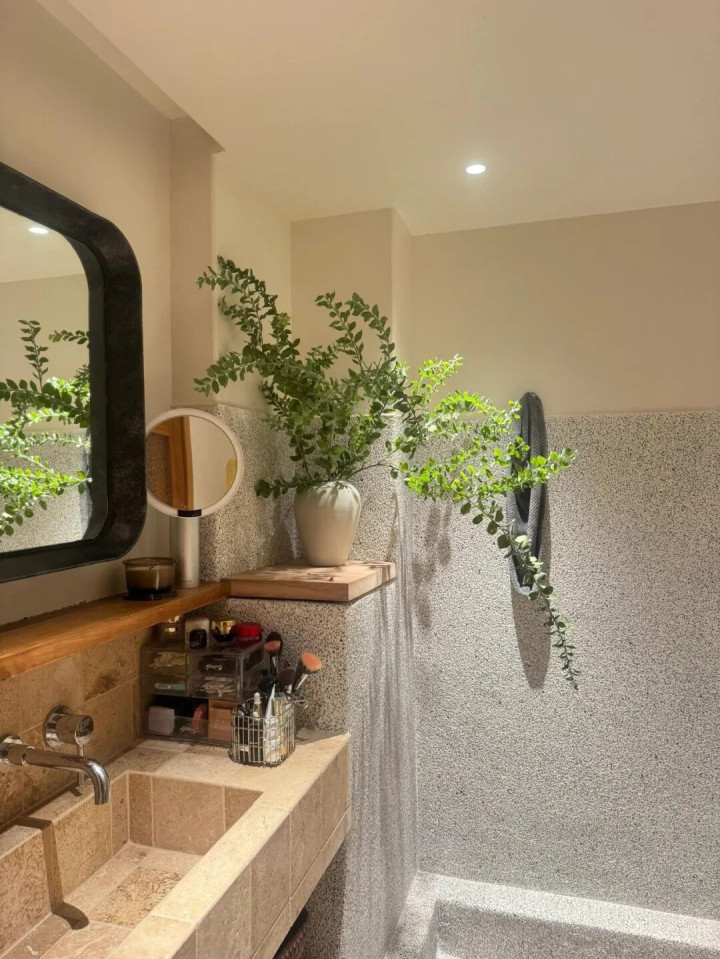网友@槮霖 就把浴室改造成了室内小雨林,每天进卫生间都感觉绿意盎然,走进春天的感觉,看看这些小植物,比刷手机能让你眼睛更放松。