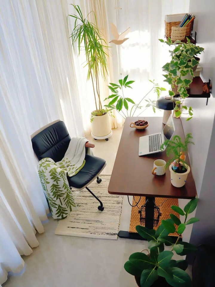网友@糖水姑娘 把阳台当花园来打造,种上各种绿植,长势特别好,绿意葱茏的,很有生命力,在这里,放一张椅子,酌一杯清茶,看一看书,方寸之间,就被治愈了。