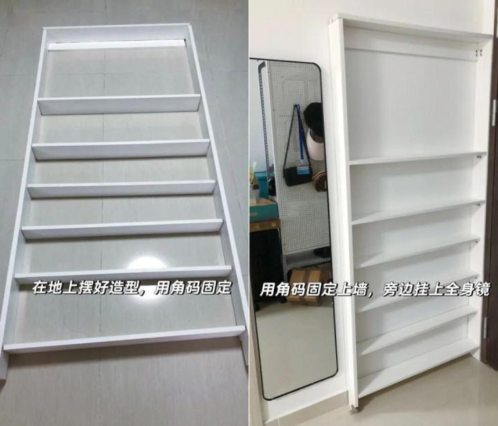 高度近视眼,想要一个镜子可以贴脸的梳妆柜,于是想出了这么一个门后超薄置物架。
