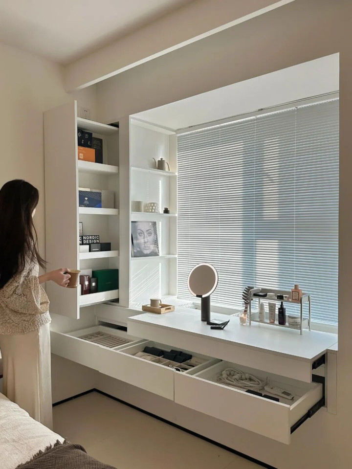 想功能更实在,能拆的话直接敲掉(非承重部分),延伸出一块宽桌面,下面做成抽屉。瞬间,它就变成了一个书桌/梳妆台。
