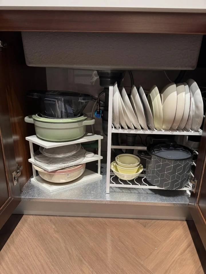 厨房水槽下面管道多,地方鸡肋,看着就头疼,90%的家庭最后都沦为了堆放塑料袋和清洁剂的角落。