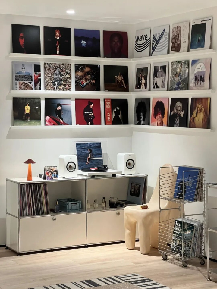 她满墙收藏的CD、黑胶,夜晚,在音乐角落里躺平,热爱的事物都在家里,就有了不想出门的理由。